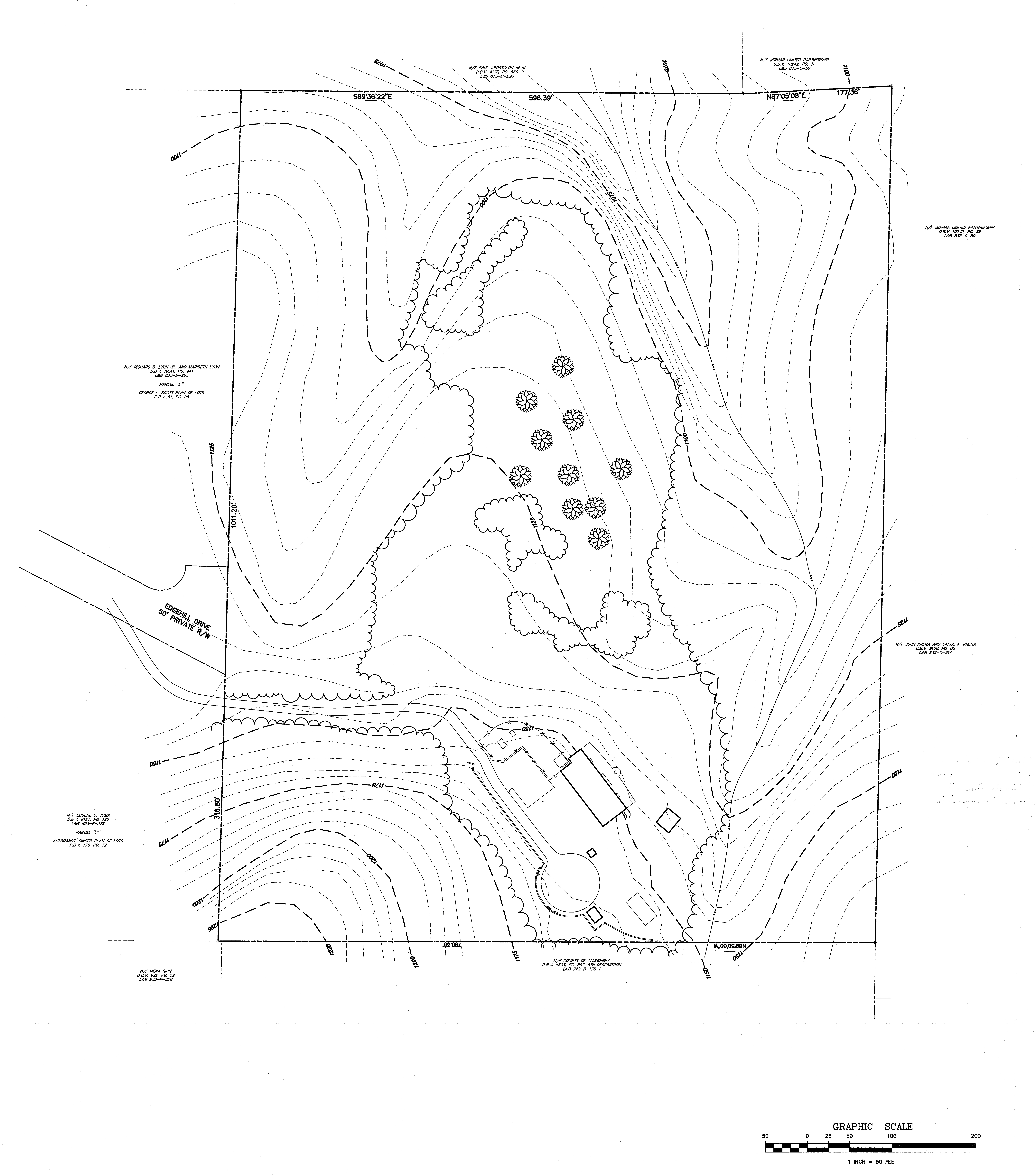 A large scale project with complex elevation changes may require a topographic survey. This will show contour lines and elevations which help the designer create an accurate grading plan.
