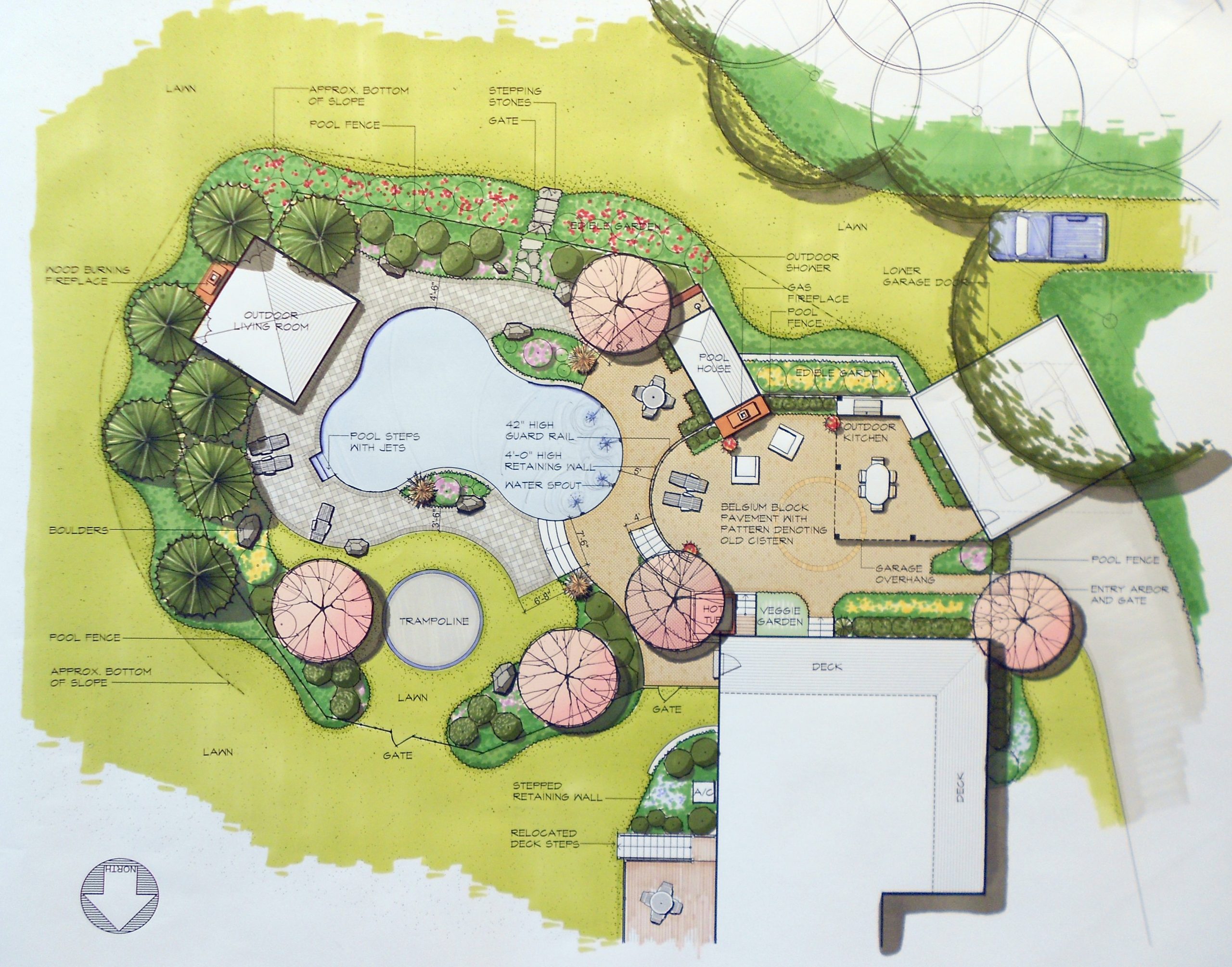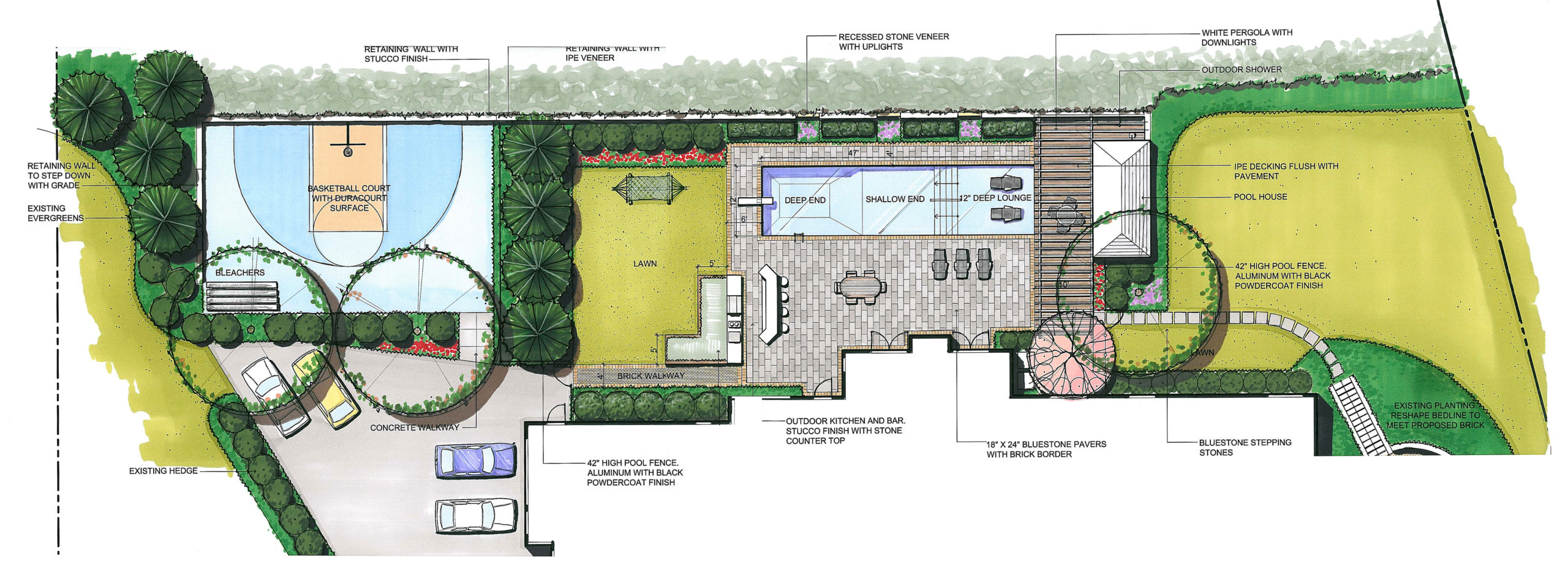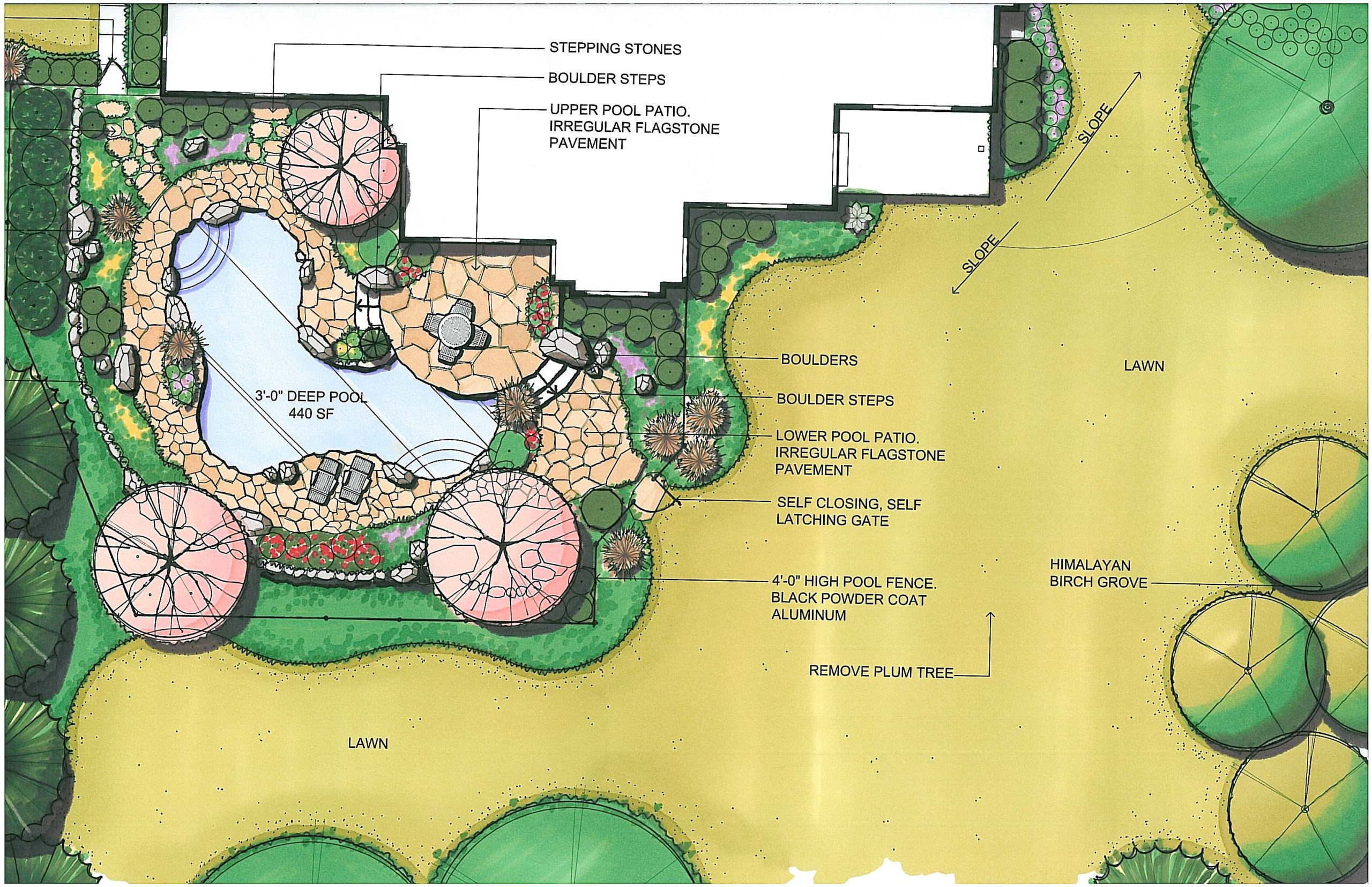 Your landscape design will include a color rendered conceptual plan view drawing.