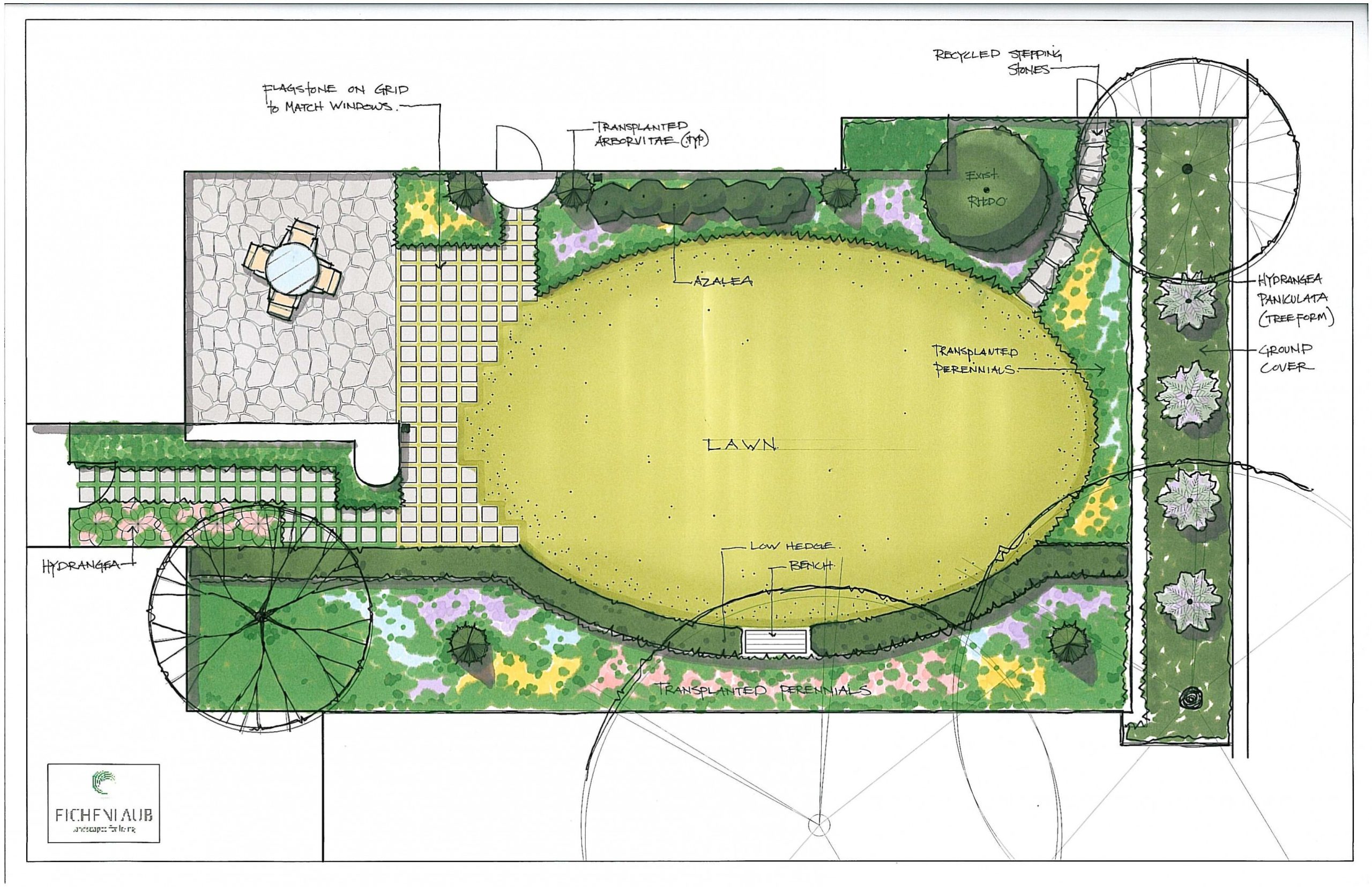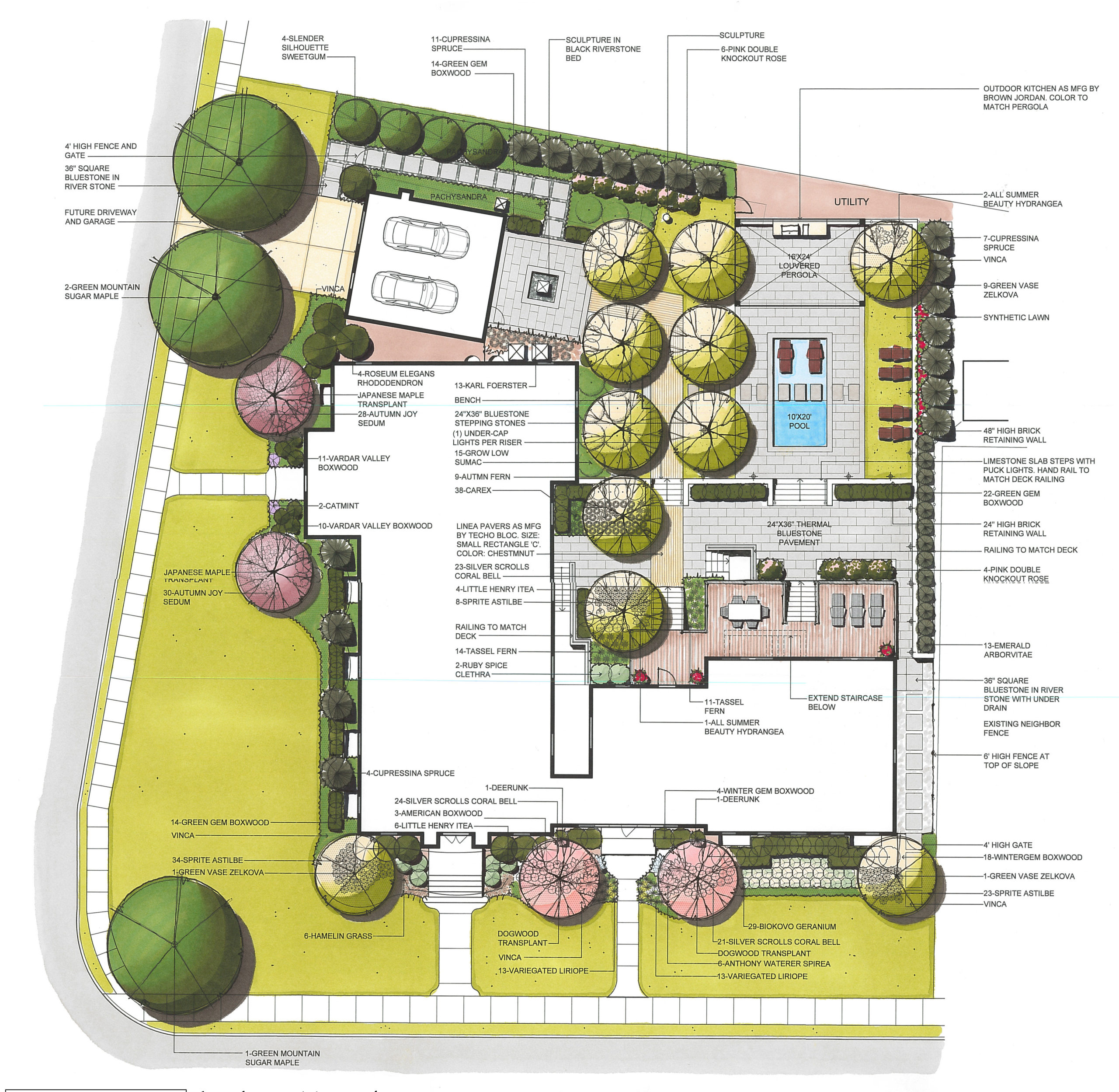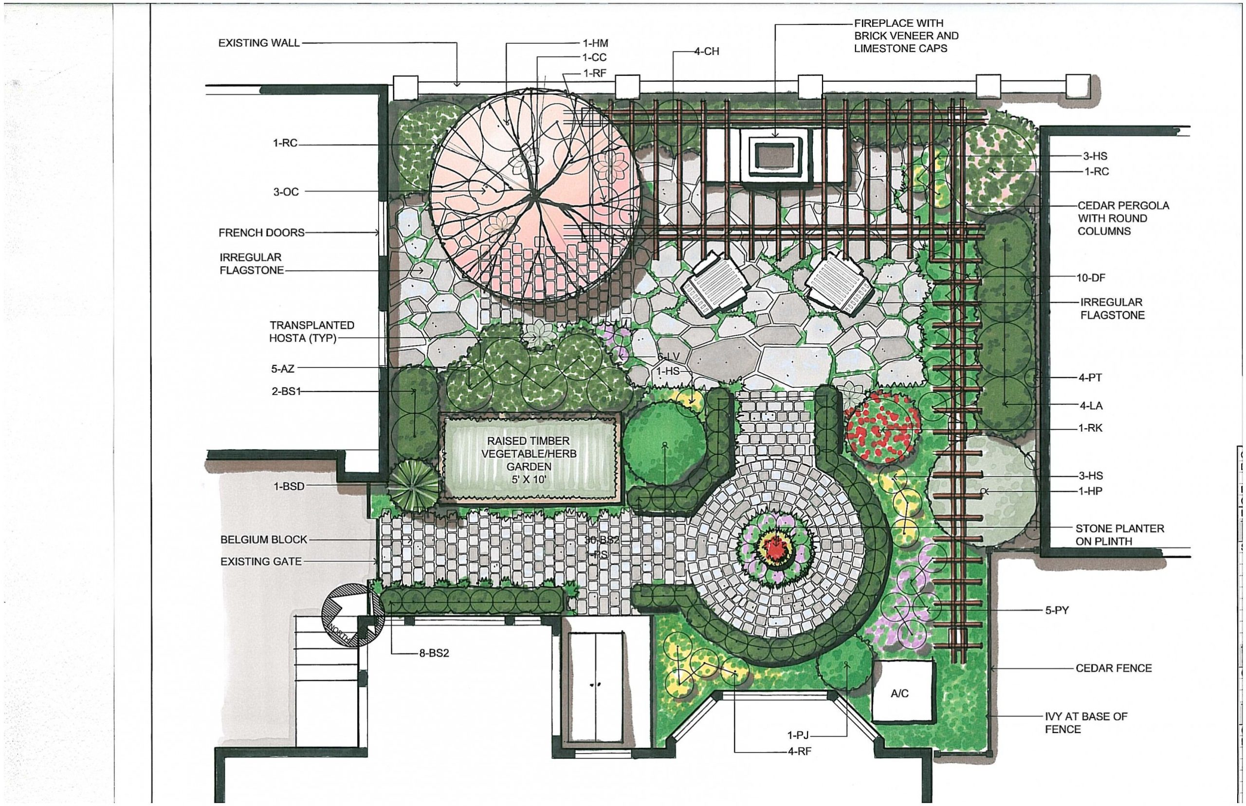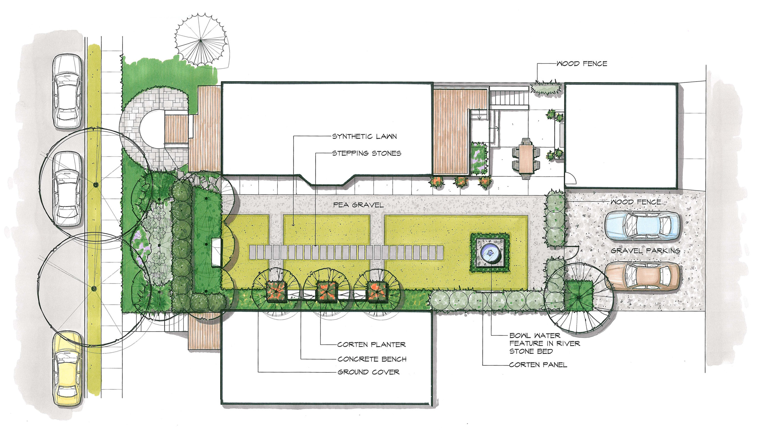 Your landscape design will include a color rendered conceptual plan view drawing.